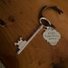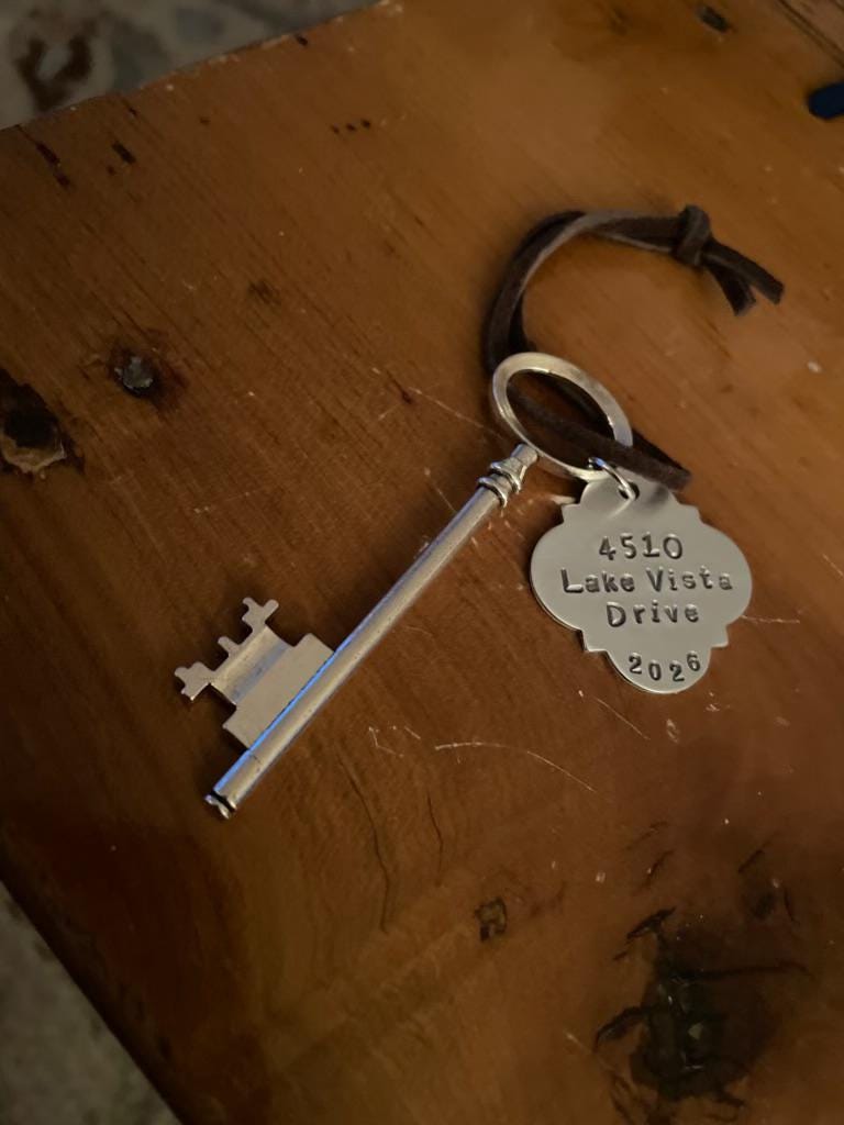 Each key is a lightweight metal which is 3 1/8 inch long. The quatrefoil tag is approximately 1 1/4 inch and will be hand-stamped, expect subtle differences in spacing ,depth and alignment of text. Please see photos for examples.